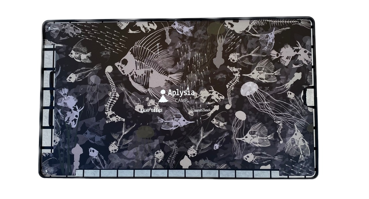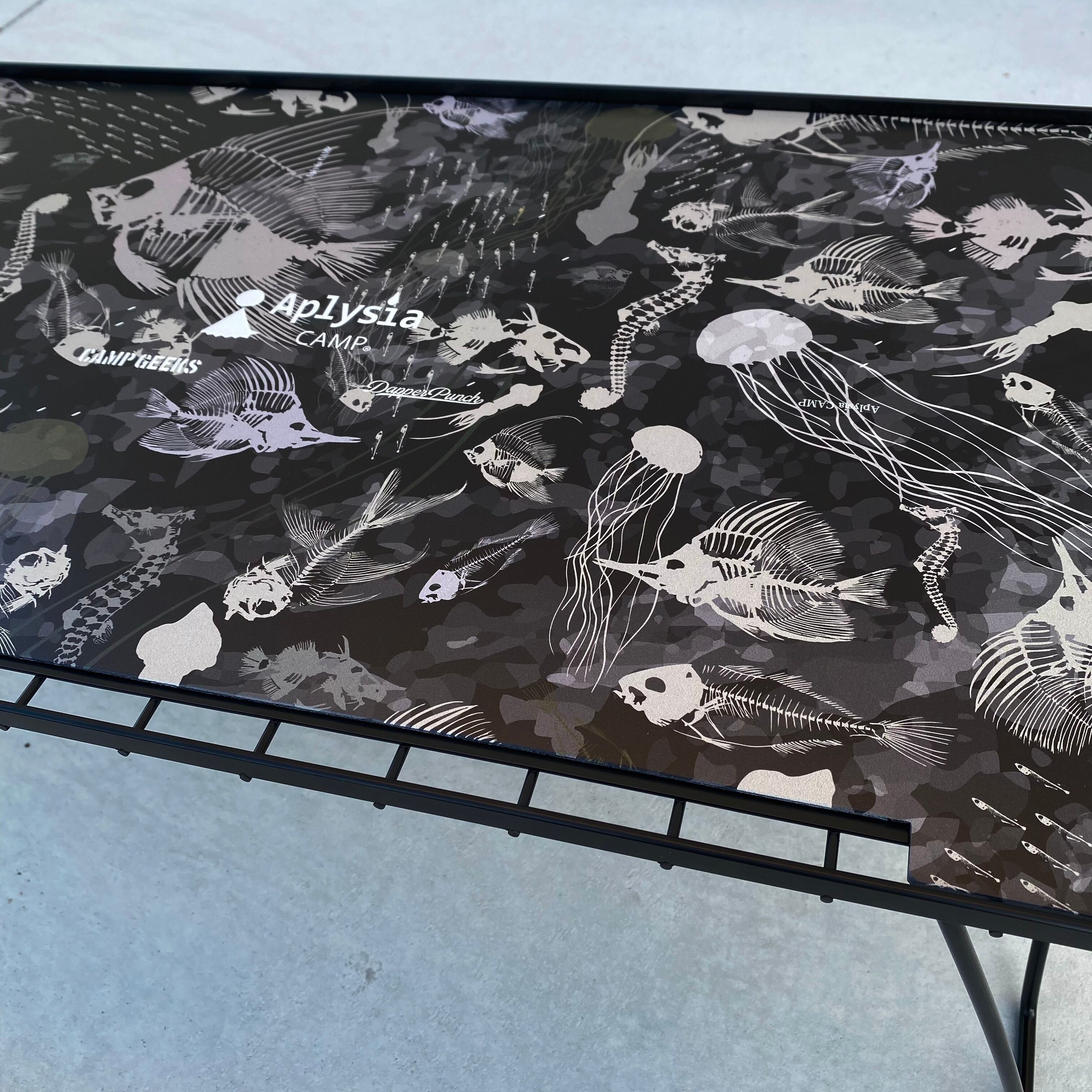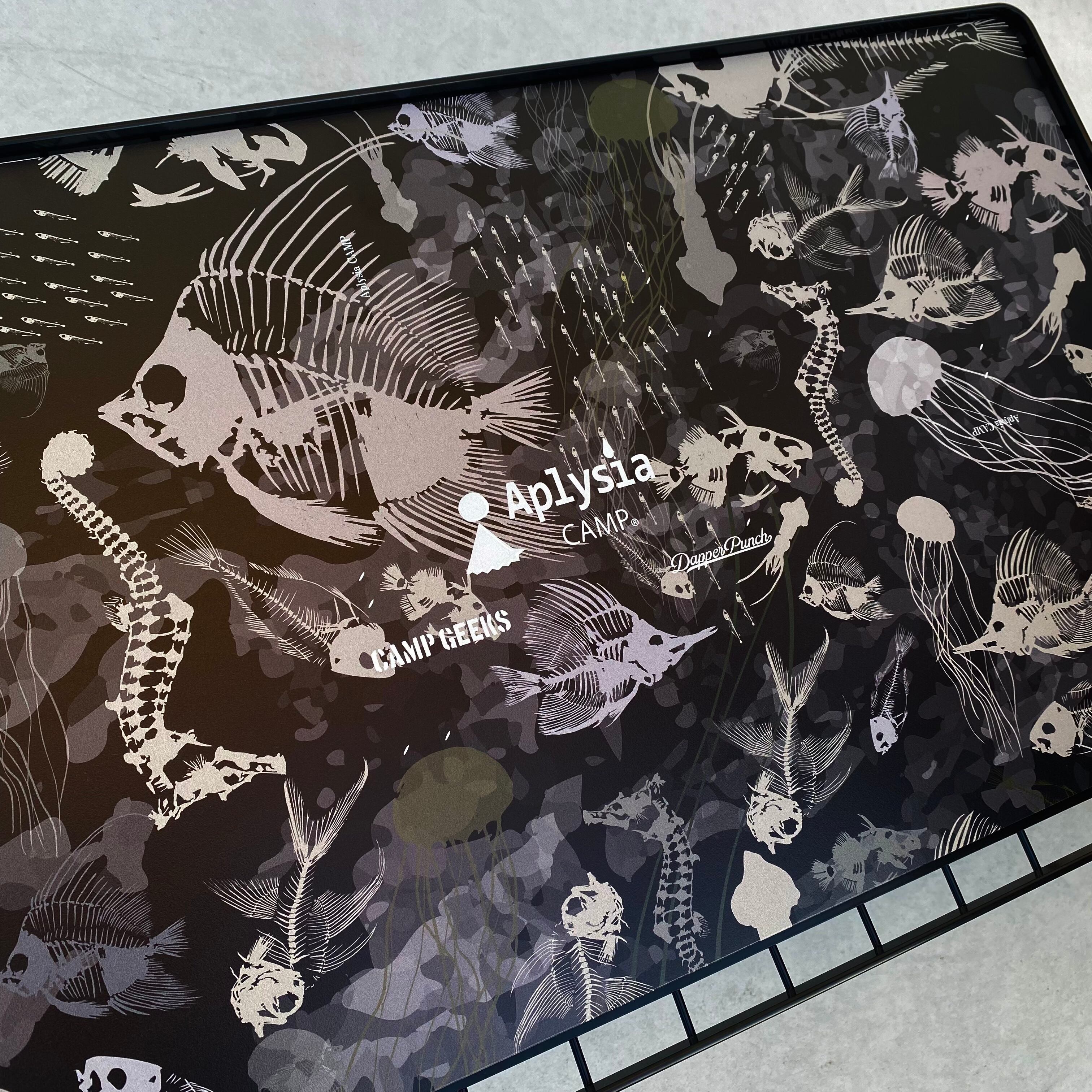 大人気のCAMP GEEKSのフィールドラック用天板にAplysiaCAMPオリジナルパターンをプリントして頂きました。